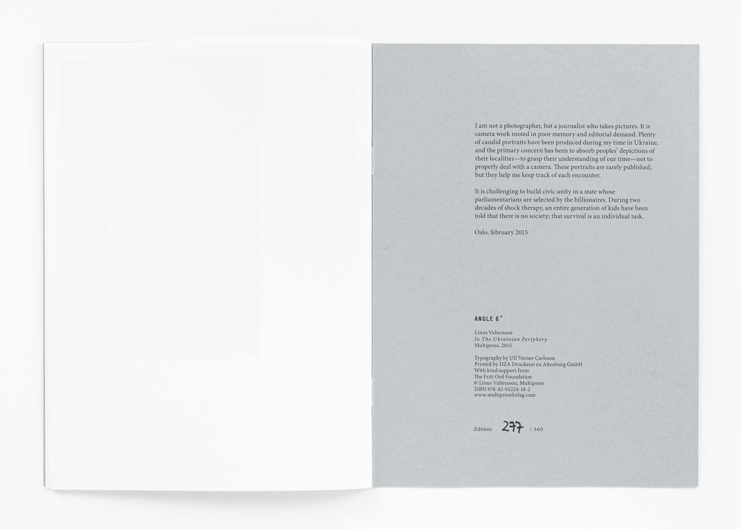 Linus Valtersson calls himself “a journalist who takes pictures”. He asserts that he takes pictures of people simply to remember what they said, without any kind of staging and artificial lighting. He gets close to his interviewees in In The Ukrainian Periphery, which shows pictures of Ukrainians taken in the aftermath of the failure of the Orange Revolution and the advent of Viktor Yanukovich as president in 2010. In the autumn of 2013 a non-partisan student movement began to mobilize, and millions manifested their protest against the president by taking to the streets.
